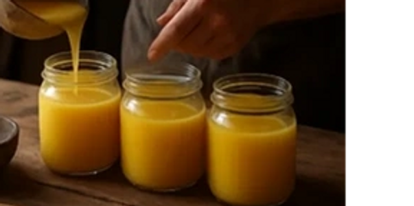 Ghee is a pure, golden, clarified butter known for its rich, nutty flavour, butterscotch aroma and exceptional quality.